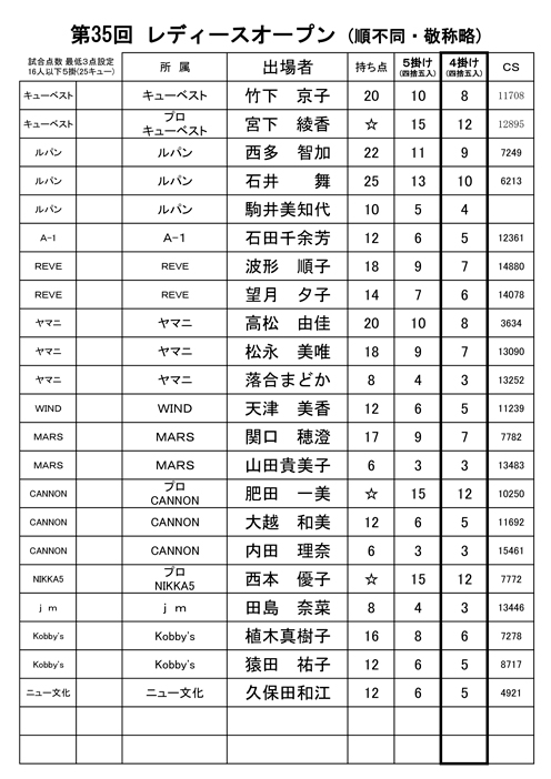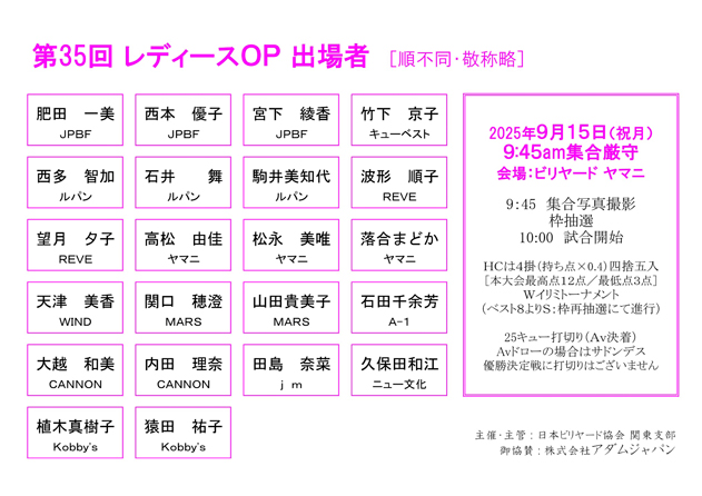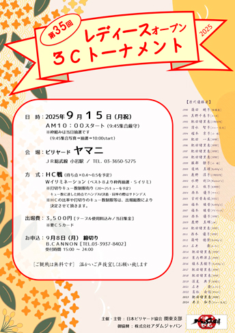第35回レディースオープン3Cトーナメント大会要項/entry listです