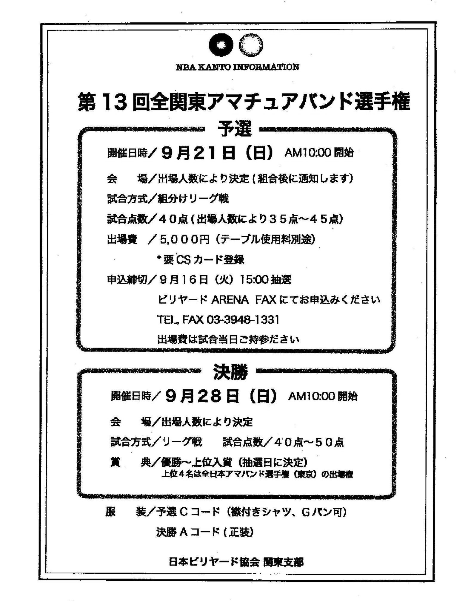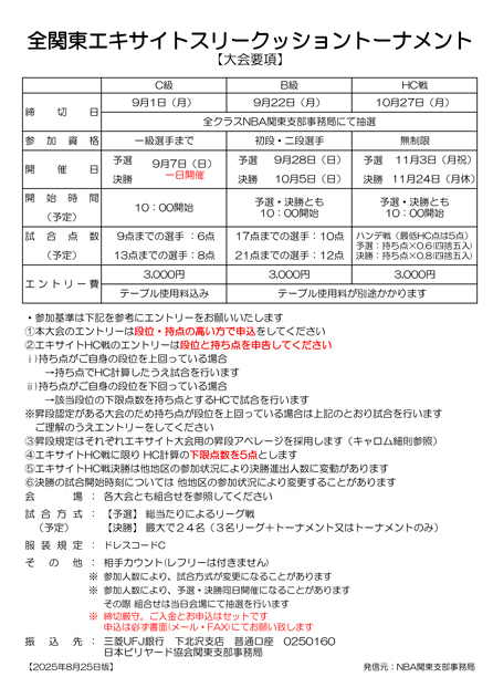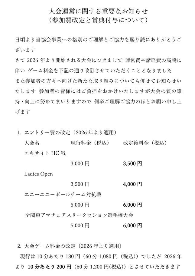 全関東エキサイトスリークッショントーナメント開催要項です
