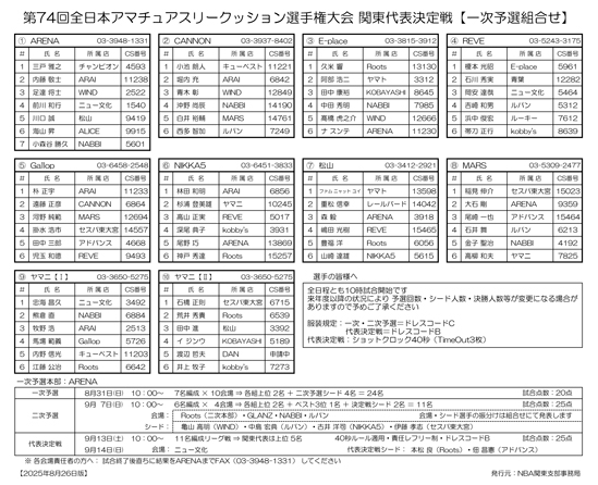 第74回 全日本アマチュアスリークッション選手権大会 関東代表決定戦 一次予選の組合せです