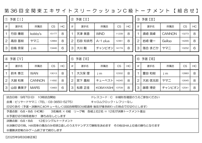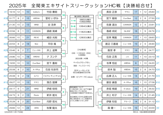 【修正3稿】2025年 全関東エキサイトスリークッションHC戦 予選組合せです