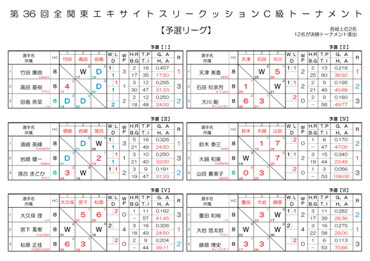 【修正版】第36回 全関東エキサイトスリークッションC級トーナメントの組合せです