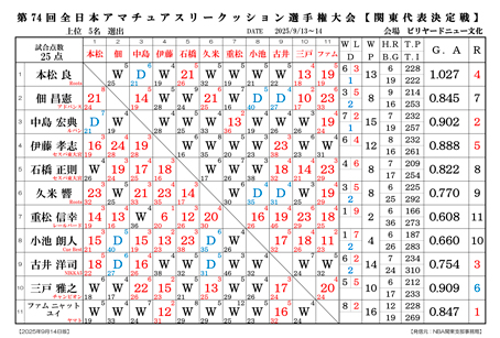 第74回 全日本アマチュアスリークッション選手権大会 関東代表決定戦 試合結果です