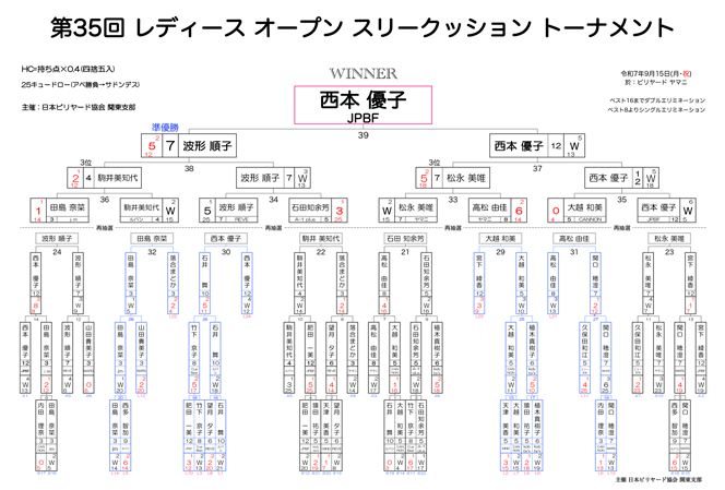 第35回レディースオープン3Cトーナメント 試合結果 試合結果です