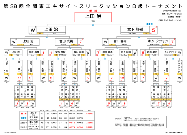 第28回 全関東エキサイトスリークッションB級トーナメント 試合結果です