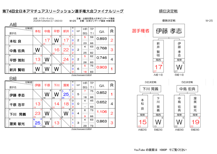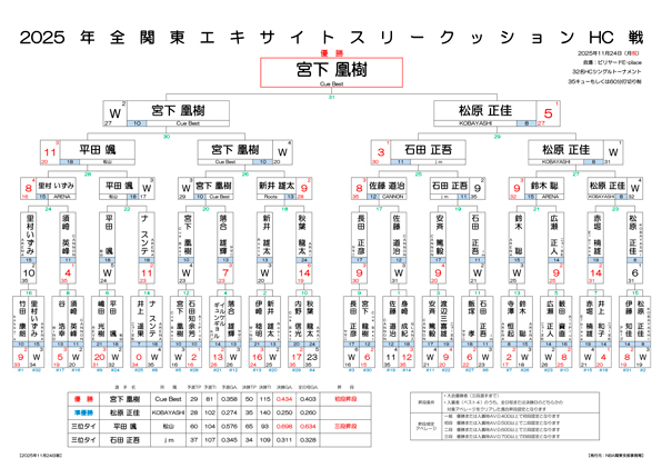 2025年 全関東エキサイトスリークッションHC戦 決勝組合せです