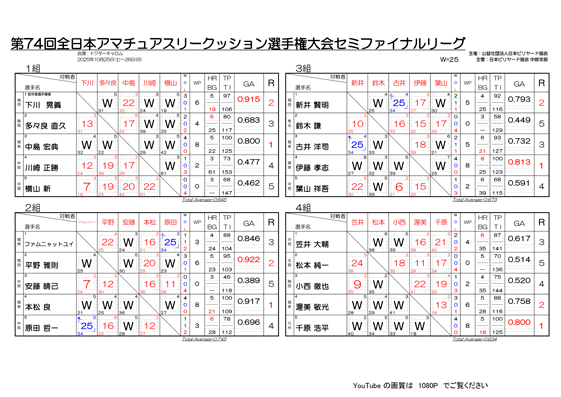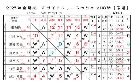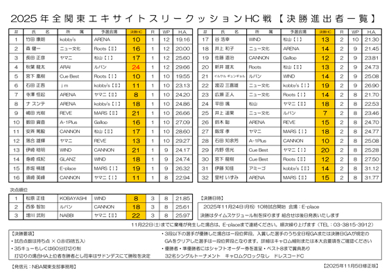 【修正2稿】2025年 全関東エキサイトスリークッションHC戦 予選結果と決勝進出選手一覧です