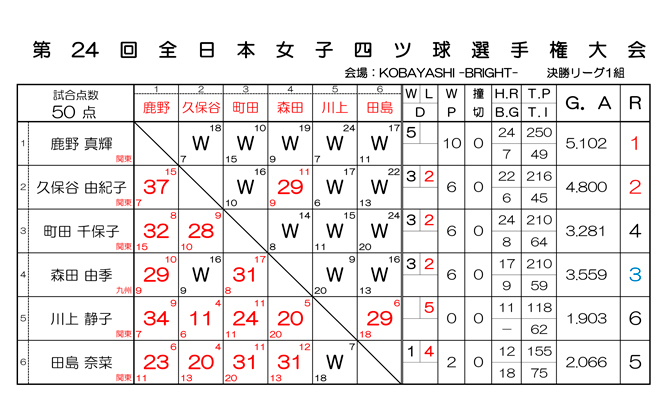 ※ 決定戦組合わせにおいて選手のGAを修正いたしました
