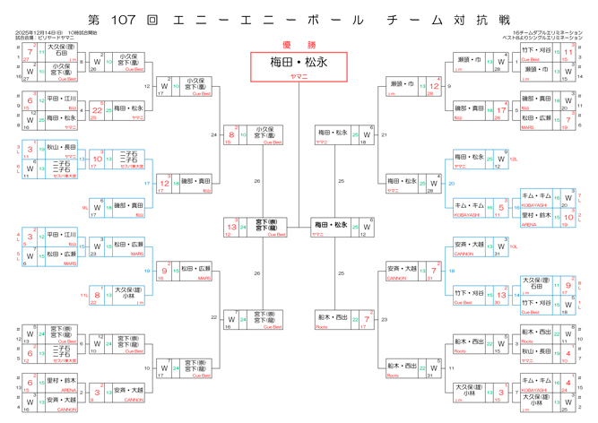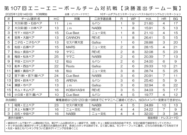 【確定版】第107回エニーエニーボールチーム対抗戦 決勝戦の組合せです