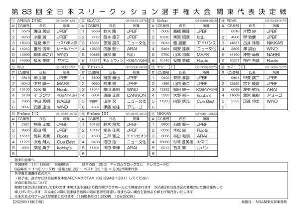 第83回 全日本スリークッション選手権大会 関東代表決定戦 組み合わせです